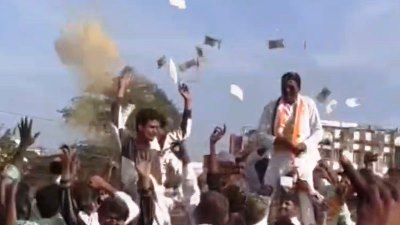 नए चुने गए कांग्रेस के नगरअध्यक्ष का नोट उड़ाते हुए वीडियो वायरल